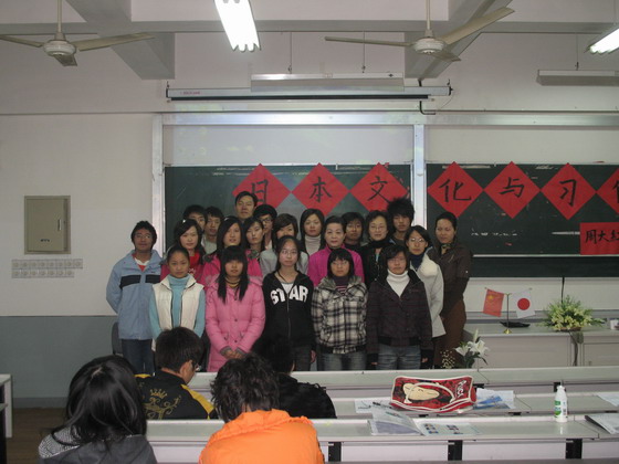 讲座内容分为日本的「地理历史」、「气候环境」、「传统节日」、「服饰文化」、「饮食文化」、「企业文化」、「社会礼节」、「花道」、「茶道」、「剑道」等等。讲座内容生动,切合学生们的关心焦点,得到学生们的发至内心的好评。教室里不时地响起阵阵掌声。