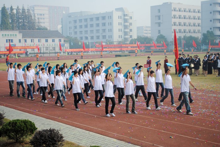 空乘1班的同学用纸飞机表达他们飞上蓝天的决心