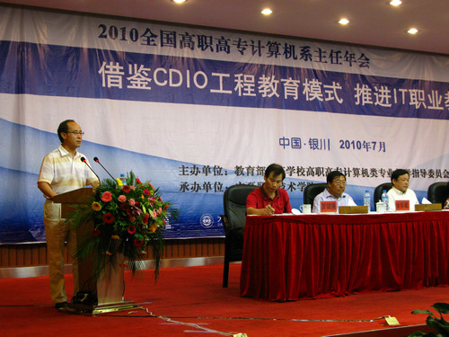 2010年7月22日至25日,全国高职高专计算机系主任年会在宁夏银川如期举行。大会由教育部高等学校高职高专计算机类专业教学指导委员会主办,以“借鉴CDIO工程教育模式,推进IT职业教育改革”为主题,是国内首次全面研讨CDIO工程教育模式在IT职业教育中的应用,有效推进了IT职业教育改革与发展的步伐。本次会议云集了IT职业教育专家、企业专家和全国180余所高职院校一线的近240名系主任和骨干教师,共同研究和探讨IT职业教育面临的突出问题,畅谈IT职业教育教学改革,为行业、企业和院校之间的交流与对话搭建平台。