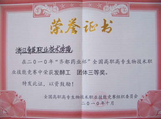 第三届全国高职高专生物技术技能大赛于10月29日、30日在淄博职业学院举行。大赛由教育部高等学校高职高专生物技术类专业教学指导委员会主办,淄博职业学院承办,齐都药业有限公司、化学工业出版社和高等教育出版社等单位协办。大赛有来自全国的61所院校的近300名学生参加,分两组(产品检验组和微生物发酵组)开展比赛,设置了理论知识、技能实训任务操作等竞赛内容。我院获得团体三等奖。