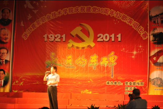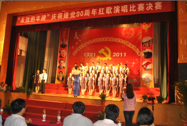 为庆祝中国共产党成立90周年,6月25日晚,学院在体育馆隆重举行“永远的丰碑”红歌演唱比赛。学院党政领导与全体参赛师生一同唱响红色经典,在一首首红歌中追忆往昔,畅想未来。