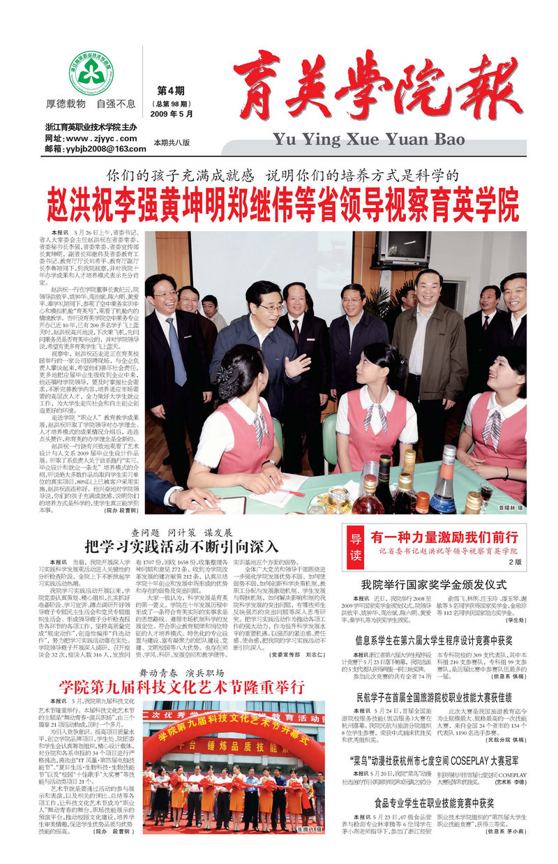 2009年5月26日,育英学院走过10年,又一个历史性的日子,让全体育英人欢欣鼓舞的日子,省委书记赵洪祝来了!