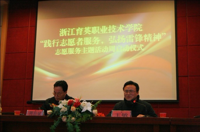 2012年3月5日下午15:30,为纪念毛泽东主席“向雷锋同志学习”题词49周年,我院“践行志愿服务,弘扬雷锋精神”主题志愿服务周启动仪式在三楼学术报告厅隆重举行。院党委副书记周治斌、学生处处长王敏、团委书记邬佳出席启动仪式,各分院系团总支书记、院系团学干部及志愿者代表250余人参加了活动。仪式由团委书记邬佳主持。