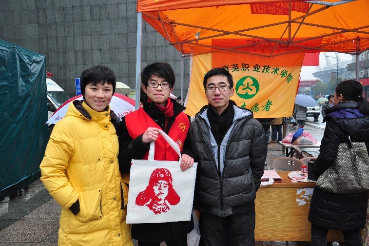 我院民航分院周丽欢、龚莎莎作为志愿者承担了杭州雷锋流动博物馆的讲解任务,赖书记看望了我院讲解志愿者,认真聆听了她们的讲解,还亲切地与她们进行了交谈。周丽欢现场接受了杭州电视的采访,视频在当天的杭州电视台现场直播。据了解,此前两位同学专门前往杭州市雷锋博物馆进行学习培训。另外,艺术系张剑斌、高榕等四位同学作为志愿者为行人现场在布袋上画雷锋画像,并送给行人,此举被领导们评价颇有特色和创意。