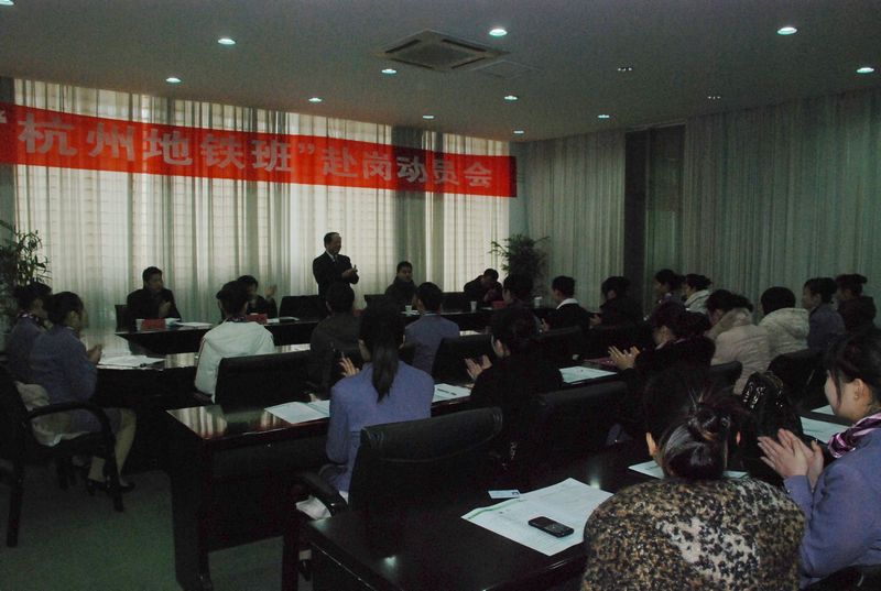 在“杭州地铁班”全体同学即将奔赴杭州地铁公司实践、就业前夕,民航与旅游分院于2月27日举行“杭州地铁班”赴岗动员会议。学院党委书记、院长洪致平到会祝贺并讲话。洪致平院长指出:“杭州地铁班”的成功实践是学院办学13年来坚持正确的合格职业人培养方向的缩影、体现和硕果,同时又创造了新的成果与办学方式,实现了“一个不落”和工学结合新模式,提高了学院的社会声誉和影响力。洪致平院长特别强调:即将赴岗的每一位“杭州地铁班”的同学幸运而光荣,承载着杭州市委、市政府的重托和杭州人的期盼,肩上担负着责任和使命,因此,全体同学一要抓住机遇,努力学习;二要热爱行业,遵守纪律;三要团结奋进,展示形象;四要坚持坚持,走向成功。