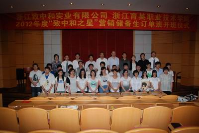 5月8日下午,2012年度“致中和之星”营销储备生订单班开班仪式在学院学术报告厅举行。学院副院长秦学礼,招就办主任方明,教务处、工商系、经贸系相关负责人,浙江致中和实业有限公司行政总监曹利丰,营销总监蒋文剑以及销售总监胡登峰等出席,订单班相关师生参加开班仪式。