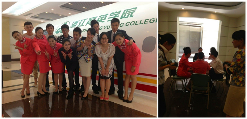 拍摄以有多年香港港龙乘务员飞行经验的唐桦老师为主要对象,由12级空乘学生配合完成。拍摄过程认真,详实,唐桦老师一丝不苟,尽心尽责。拍摄过程中黄华副院长,吕娜老师、阮鹏飞老师,娄雨冰老师,顾青老师都到场协助、指导,并且给了拍摄内容许多专业的建议和意见。