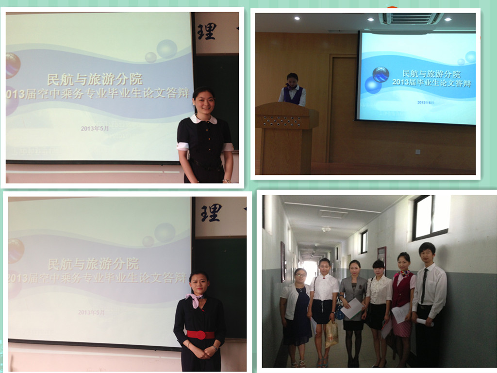 分院和教研室高度重视本次答辩工作,答辩前开展了答辩动员与准备会,对参与答辩的指导教师进行了指导和动员,对答辩文档记录和答辩后论文工作流程进行了培训和说明,530日,2013届空乘专业毕业论文答辩工作圆满完成。