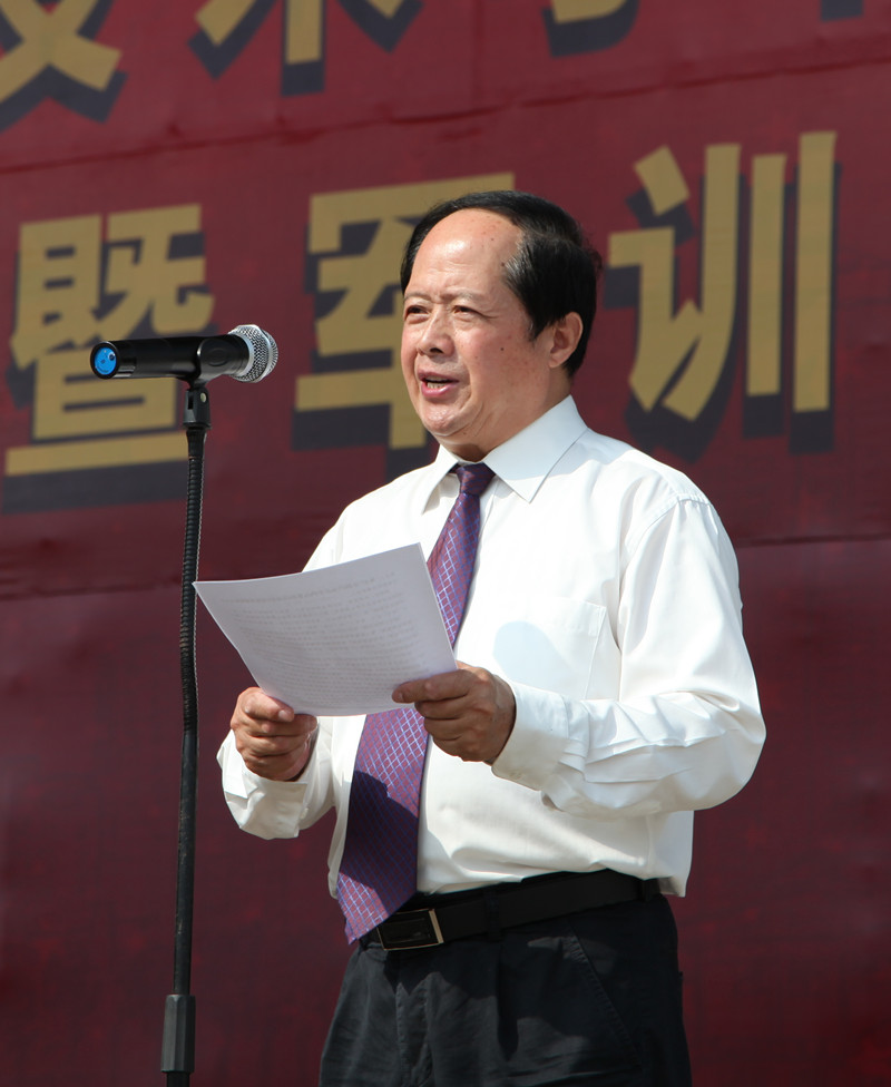 周军发表讲话,他向全体新生和执训教官分别提出要求,要敢于锻炼、刻苦训练;要服从命令,严格自律;要科学施训,确保安全。希望同学们以昂扬的斗志、严整的姿态、乐观的心态积极投身到军训当中,为迈好大学生第一步,成就未来梦想打下坚实的基础。
