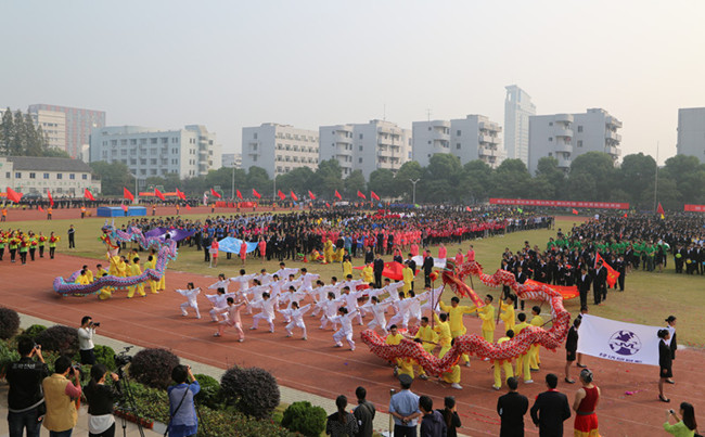 来自各分院、系的运动员、师生代表团排列着整齐的方阵依次经过主席台。民航分院方阵在礼仪表演的引领下身着靓丽的制服,信息系引领时代潮流的多元化,工商系舞狮表演带着神采奕奕的全体工商人,经贸系的双龙戏珠环绕着太极方阵以及艺术系的活力艺术展示无不彰显着育英学子积极向上的精神风貌。