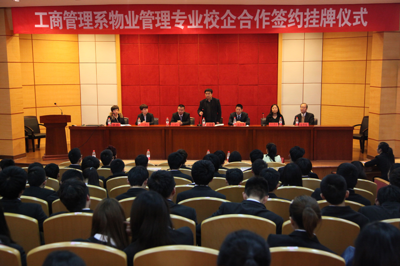 在校企合作签订仪式上,三家物管公司高管分别介绍了各自的企业基本情况、用人需求、员工培训机制和发展空间。同人物业公司是一家国企,国家一级资质物管企业,其业务对象以省级机关住宅小区为重点,以写字楼、学校、别墅等为辅。该公司总经理助理沈先生表示,物管行业用人并不只注重学历,更重视综合能力和素养。另外两家企业高管也强调,员工要有踏实的工作态度,不惧从基层做起,一步一个脚印坚持下去,才能把工作做好,逐步走向高级管理岗位。