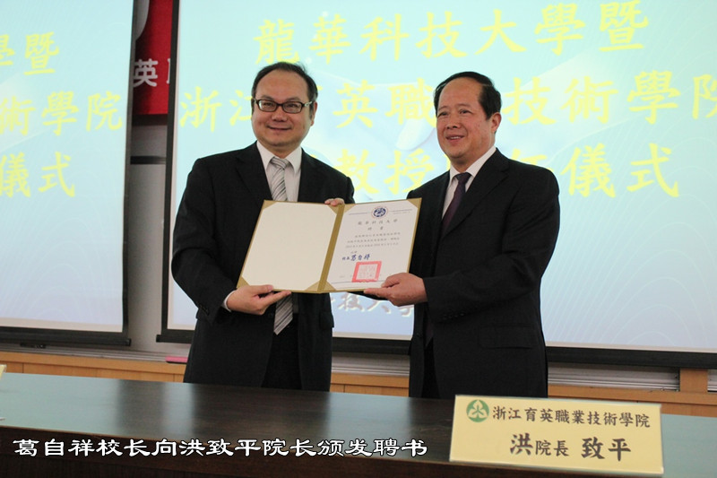 2013年5月6日,我院骨干教师培训班开班典礼在台湾龙华科技大学五楼会议室举行。龙华科技大学校长葛自祥在致辞中高度赞同学院的办学理念和办学定位,并称此次师资培训班“开启了两校友好互动的里程碑”。