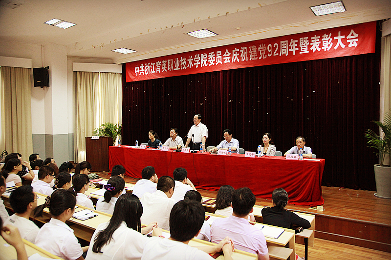6月28日下午,学院庆祝中国共产党成立92周年暨表彰大会在综合楼一楼报告厅隆重举行。学院党委书记、院长洪致平,党委副书记、副院长周治斌,副院长陈六明、黄爱平,党委委员、组织部长谢鑫,党委委员、监察室主任陈忠春出席。全院师生员工党员、入党积极分子代表参加。周治斌主持会议。