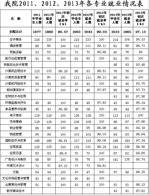 我院2011-2013各专业就业情况