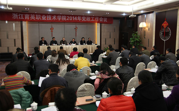 2014年2月15日-16日,学院在海盐召开2014年党政工作会议,学院党委书记、院长洪致平,党委副书记、副院长周治斌,副院长陈六明、黄爱平、王锡耀以及全体党政中层干部出席会议。海盐县教育局副局长杜伟明,海盐县教育局纪委书记蔡卉琳,海盐商贸学校校长戴少华和海盐理工学校校长何永香应邀出席,并介绍海盐经济、教育发展情况。会议由学院领导主持。