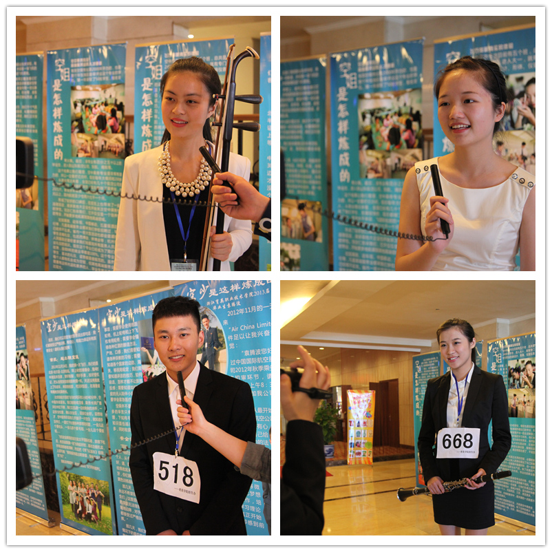 综合面试中,考官会给考生安排一个才艺展示的环节,大多数考生为了吸引考官注意力,赢得印象分,都抓住机会表演各种才艺,如乐器演奏、武术表演、歌舞等等。来自宁波的王同学,从小学开始一直担任班长,学习了钢琴、长笛等乐器,其中最擅长的是二胡,等级考试过了十级,曾代表浙江省参加全国二胡表演比赛,获得金奖。她在考场上凭着流利的自我介绍和一曲娴熟的二胡表演,给考官留下了深刻印象。王同学在接受采访时表示,很喜欢空姐这个职业,从学长口中得知育英学院是浙江省最早开办空乘专业的高校,在现场的展板上看到那么多学姐学长都飞上了蓝天,希望自己有一天也能在育英学院实现当空姐的梦想。