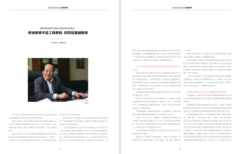 “这是党和政府对育英学院最高的褒奖,对育英师生员工最大的鼓励。我们始终面临‘民办’和‘高职’两大问题的挑战,经过十五年的实践,我们积累了属于育英学院自己的宝贵经验”。洪致平是育英学院的筹办人之一,从1998年5月育英学院成立至今,历任育英学院执行院长、党委书记、院长等职务。 洪致平对育英学院有着深厚的感情,他是看着育英学院在民办高职的道路上,从步履蹒跚到跨步前行。15年来,在洪致平的带领下,育英学院从成立初期的5个专业469名学生到如今的24个专业7000余名学生,教职工也由原先54人,增加到400余人。