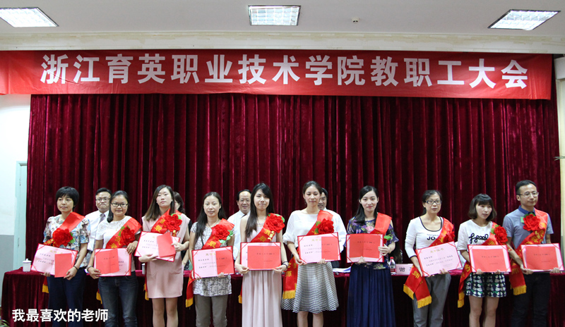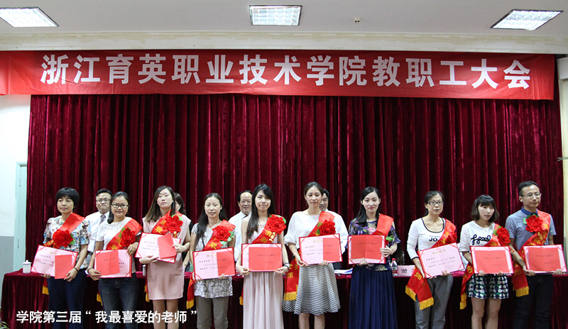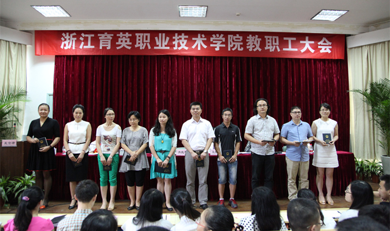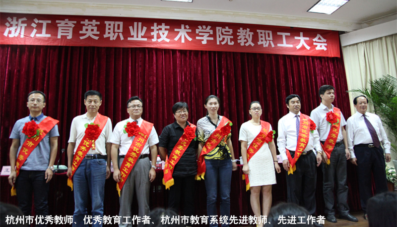 王锡耀宣读表彰优秀教师和先进集体文件。崔海辉获浙江省高校优秀教师称号;夏天在浙江省高校青年教师教学技能竞赛获一等奖;严志嘉被评为杭州市优秀教师,王锡耀被评为市优秀教育工作者,黄华、夏天、赵瑞晔、陆善兴被评为市教育系统先进教师称号,钱笙、杨振顺、王德芳、王敏被评为市教育系统先进工作者;民航与旅游分院空中乘务教研室等4个单位获学院先进集体称号,吕娜等13人获学院优秀教师称号,张锡良等2人获学院优秀班主任称号,黄华等14人获学院优秀工作者称号;夏天、汪迎春、费亚英等10人被评为学院第三届“我最喜爱的老师”。