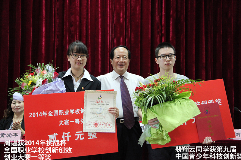 王敏宣读表彰学生校外竞赛重大奖项文件,裴翔云获第九届中国青少年科技创新奖,周韫获2014挑战杯全国职业学校创新创效创业大赛一等奖,院田径队在全国第十四届大学生田径锦标赛夺得2金4银2铜、男团第三、女团第五、综合团体总分第六名的佳绩。
