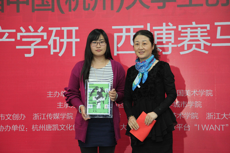 我院13级广告设计与制作专业学生蒋芮在众多优秀选手中脱颖而出,通过现场展示,他所设计的作品“吉祥”获金手指奖。俞敏燕获优秀指导教师奖。
