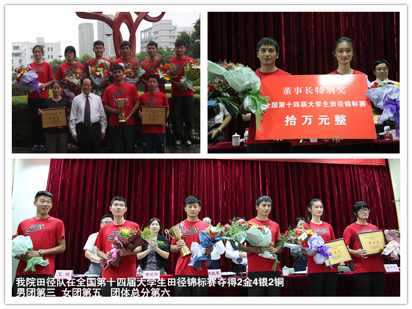 王敏宣读表彰学生校外竞赛重大奖项文件,裴翔云获第九届中国青少年科技创新奖,周韫获2014挑战杯全国职业学校创新创效创业大赛一等奖,院田径队在全国第十四届大学生田径锦标赛夺得2金4银2铜、男团第三、女团第五、综合团体总分第六名的佳绩。