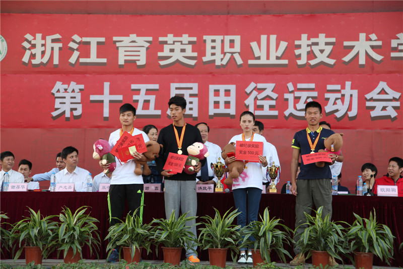 在运动会闭幕式上,学院院长洪致平,党委书记、副院长王锡耀,党委副书记、院长助理谢鑫,院长助理王敏以及分院、系及相关职能部门负责人为获奖个人和团体颁奖。