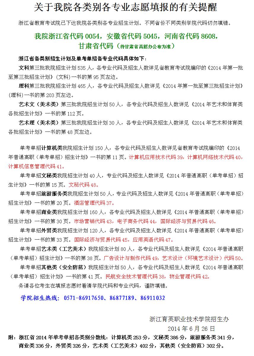 关于我院各类别各专业志愿填报的有关提醒