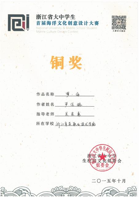 我院学子在浙江省首届大中学生海洋文化创意设计大赛上崭露头角