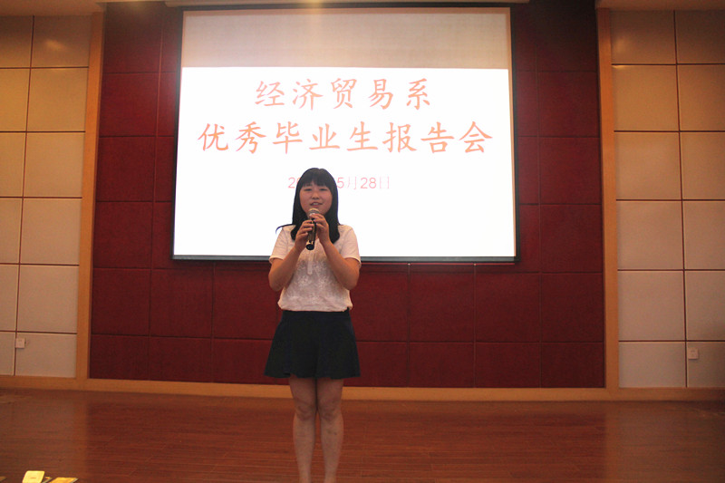 2015年5月28日晚,经济贸易系在三楼学术报告厅开展了“感恩母校,励志青春”优秀毕业生报告会,优秀毕业生代表12英语B班张嘉望、12国贸D班来煌键和12日语B班赵志刚做实习经验分享。系党总支书记田翔,各班主任老师和13级、14日语3+2班学生参加了报告会,会议由学工秘书余国浩主持。