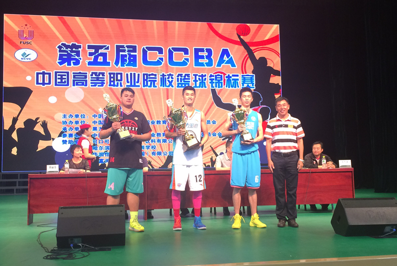 6月6日—13日,第五届CCBA中国高等职业院校篮球锦标赛在黑龙江举行。我院男子篮球队经过9天8场激烈角逐,最终获得第三名。14空乘H班谢焜煌和13国贸B班李海菠获“体育道德风尚球员”称号,教练员甄银龙被评为“优秀教练员”。