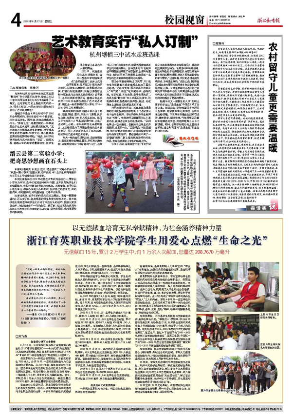 在读学生不过几千人的学院,其人口献血率是在杭高校中排名第一,远远超出了一些上万名学子的综合性大学,让学校真正成为一个教书育人的场所。”