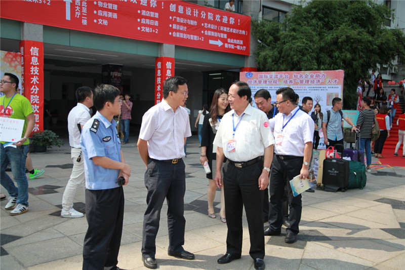 一早,院领导洪致平、王锡耀、黄爱平、谢鑫、王敏来到各报到现场,了解迎新工作进展情况,看望参加迎新工作的志愿者,并与新生及家长亲切交流。教育厅下沙高教园区管委会办公室主任胡惠华也前来指导迎新工作。