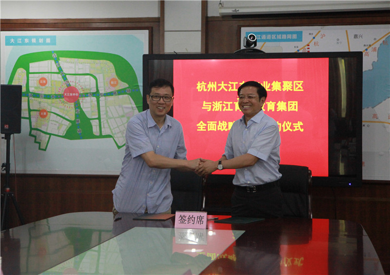 2015年9月11日,浙江育英教育集团与大江东产业集聚区管理委员会签订了全面战略合作协议,开启了育英学院跨江发展二次创业的新征程。育英教育集团董事长兼学院董事长黄纪云与大江东管委会主任杨军代表各自单位,签署协议。这是育英学院把握“再造一个杭州工业”、“再造一个杭州新城”的发展机遇,跨江发展的里程碑,是扬帆启航的重要时刻。