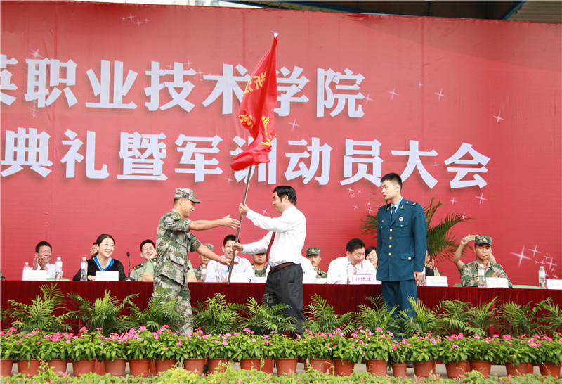 军训教官代表郭占江、教师代表阮澎飞,老生代表周莉莎、新生代表应家豪分别上台发言,表达了对新生军训、学习和生活的美好祝愿。