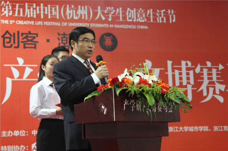 我院党委书记、常务副院长王锡耀出席大创节开幕式和赛马会颁奖典礼。出席赛马会颁奖典礼的还有浙江大学城市学院党委副书记刘玉勇,我院创意设计分院院长宋连凯和副院长黄汶俊。
