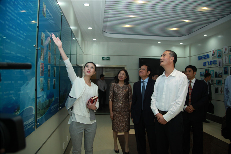 张仲灿部长一行还参观了校史室和民航空客330全真模拟客舱服务实训舱。