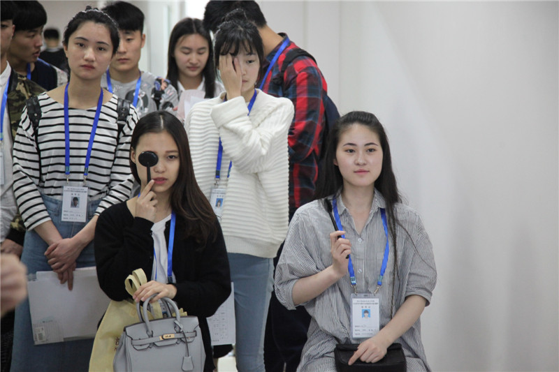 综合面试环节的考官由航空公司专家以及学院空中乘务专业教师组成,具有丰富的航空服务经验。考官们参照航空公司选拔乘务员的标准,主要通过考生自我介绍考察口头表达能力,通过他们的站姿、走姿和肢体语言来考察身材、气质,通过提问考察考生沟通能力、应变能力和亲和力等综合素质。