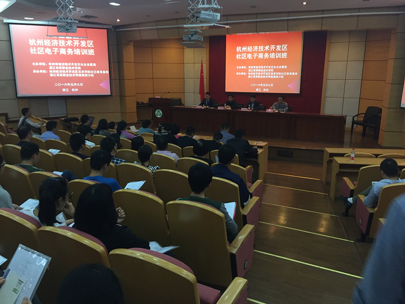 2016年5月7日上午,杭州经济技术开发区社区电子商务培训班开班典礼在我院3号报告厅举行,开发区社会发展局副局长庄加棒、开发区社区教育学院院长刘大洋、我院党委书记、常务副院长王锡耀及相关培训老师出席开班典礼,商贸分院院长欧阳驹主持典礼。