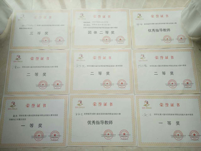 5月27日,第六届全国商务秘书职业技能大赛在河北唐山师范学院举办,我院文秘专业学生4位选手参赛,获团体二等奖,赵洁获个人综合一等奖和形象与口才展示一等奖,黄梦露、陈文慧、潘虹分别获个人综合二等奖,团队方案制作三等奖,文秘教研室王亦飞、胡琼获优秀指导老师称号。