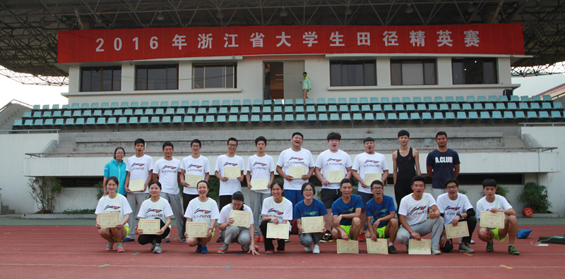 2016年6月4日-5日,由浙江省教育厅、浙江省体育局举办的浙江省大学生田径精英赛,我院派出20名运动员参加普通组比赛经过两天激烈的争夺,我院20名队员获得了9金12银5铜的优异成绩。领队:徐晓斌,教练:汤剑辉、丁蜜笑。
