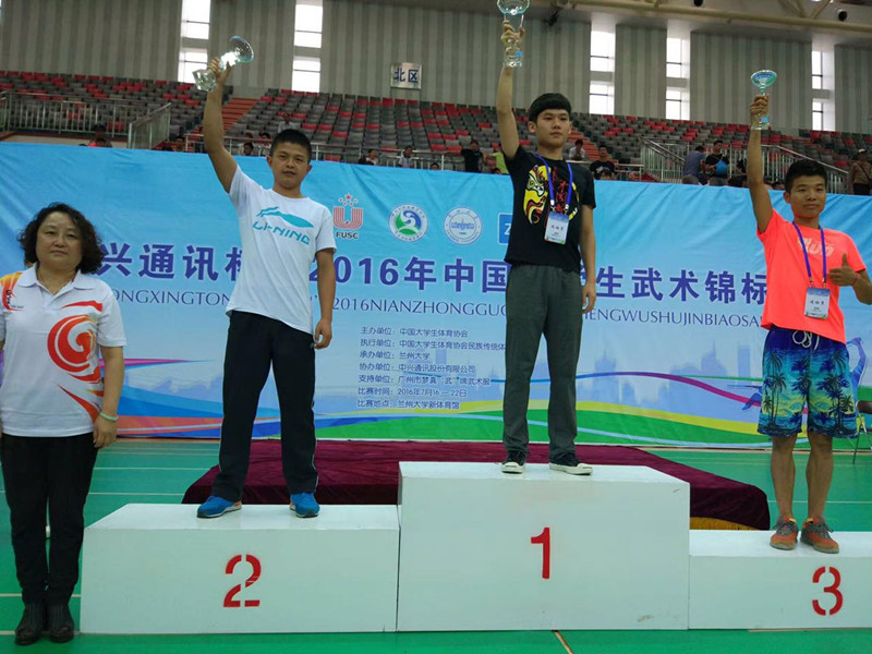 7月21日,2016年中国大学生武术锦标赛在甘肃兰州大学顺利闭幕。我院选派的两位武术健儿参加6个项目的角逐,最终他们过五关斩六将,获得6枚奖牌,其中4金2银,在所有参赛的78所本专科院校(我院是唯一参赛的专科院校)中名列男子团体第二,创造了赛场神话。我院也是浙江参赛的8所院校中人数最少,而唯一获得团体前三的高校。