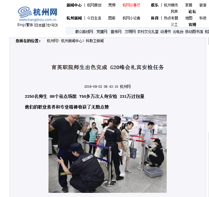 育英学院圆满完成G20杭州峰会礼宾安检任务