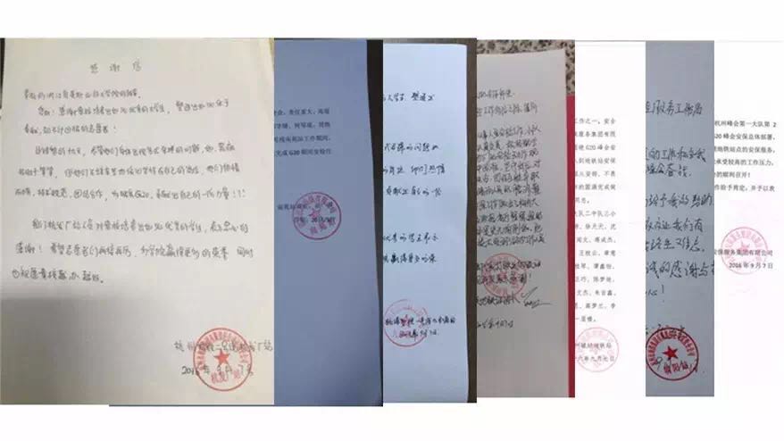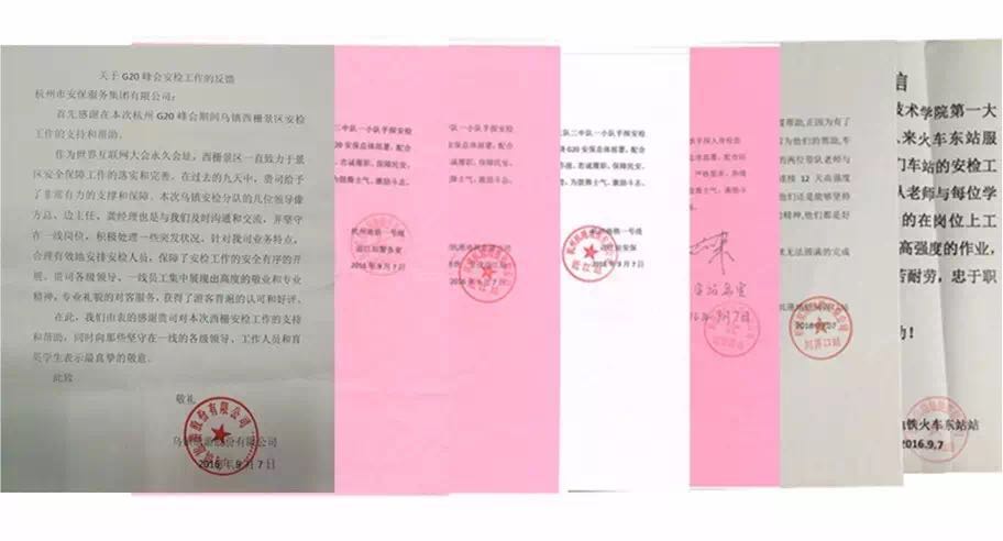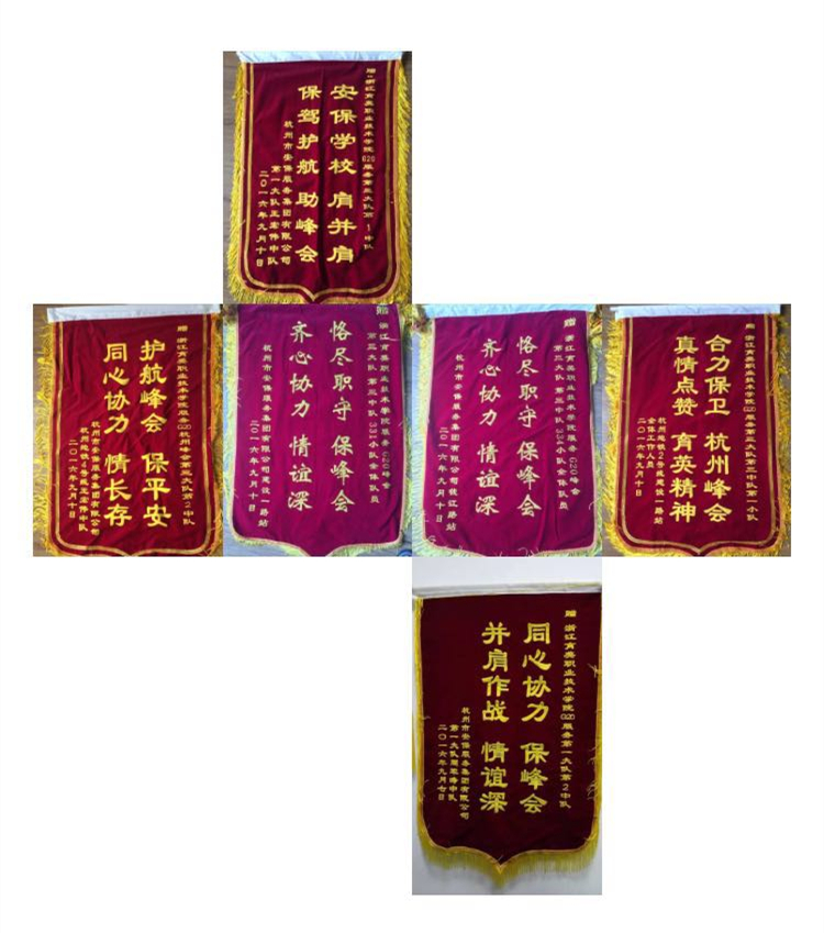 2250名育英师生,37天奋战在G20杭州峰会礼宾、安检第一线,赢得了社会对育英学院的认可。这几天,学院陆续收到数十份来自洲际酒店、黄龙饭店、萧山机场、杭州地铁、杭港地铁、绕城高速检查站、乌镇旅游股份有限公司、建德市公安局等单位的锦旗、表扬信和感谢信。