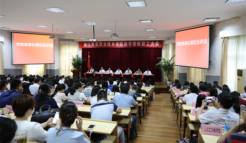 在全院教职工大会上,黄爱平宣读学院中层干部聘任文件。王敏宣读浙江省高校优秀辅导员、杭州市及杭州市教育系统优秀教师、优秀教育工作者表彰文件。谢鑫组织新聘教职工自我介绍,并集体宣誓。会议由王锡耀主持。