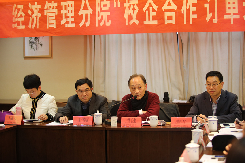 经济管理分院院长谢厚华做了《校企合作、订单培养新路径与管理措施》的主题发言,就物管管理、酒店管理这两个专业如何解决“订单培养”过程中学生在企业实习时间待不长等老问题,提出了“订单培养”的“四定七路径”新思路,供与会的各家企业领导和老师共同交流,互听建议,研讨促发展,推进订单班的发展与成熟。