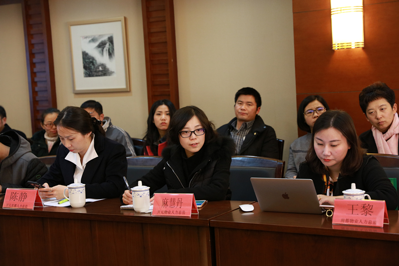 杭州黄龙饭店人力总监梁越美,纳德股份有限公司人力副总施群丹,杭州洲际酒店人事经理赵雪, 杭州经济技术开发区和达物业管理有限公司副总经理吴赞华,南都物业服务股份有限公司人力总监王黎,浙江开元物业管理股份有限公司人力总监麻慧丹等与会单位负责人就目前我院学生在企业实习情况、合作需求等方面进行交流,肯定我院学生在企业的优秀表现,同时也提出问题和建议。