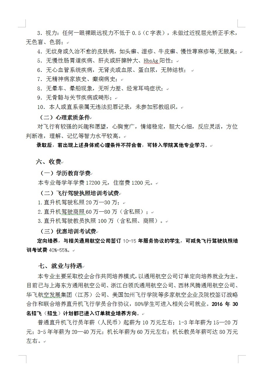 “直升机驾驶技术”专业招生简章