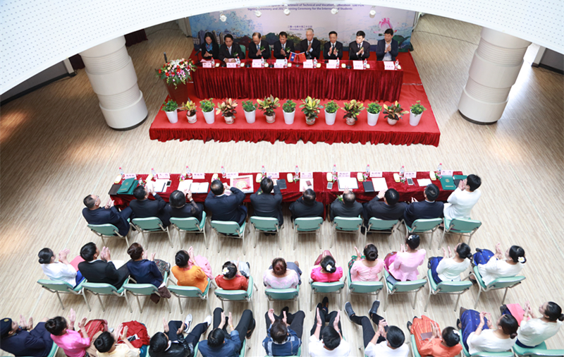 2016级老挝留学生班任课教师王彤、2016级老挝留学生陆娅、2017级老挝留学生Billy分别作为教师、老生和新生代表发言,并由老挝留学生薇拉娅、唐糖担任王彤和Billy的汉语翻译,陆娅用汉语和老挝语双语发言。老挝教育代表团随团翻译通萨多次对2016级老挝留学生的中文发言和翻译表示肯定和赞赏。