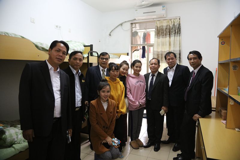 本朋副司长一行还观看了2016级老挝留学生的专业技能展示、传统文化展示、中文导游词讲解。看到汉语零基础入学的首届老挝留学生们经过一年的学习取得巨大进步,能够流利的中文解说和翻译,本朋一行十分欣慰,赞不绝口。