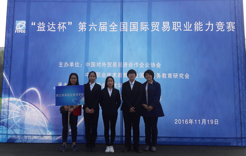 2016年11月19日,第六届全国国际贸易职业能力竞赛在绍兴举行,53所高职及本科院校的67支队伍参赛。15国贸D班叶晶漪、16国贸五年制B班楼集颖、来超男分别获得出口退税核算及综合业务操作单项技能一等奖,综合技能三等奖。指导老师为魏巧米和章雁峰。 |